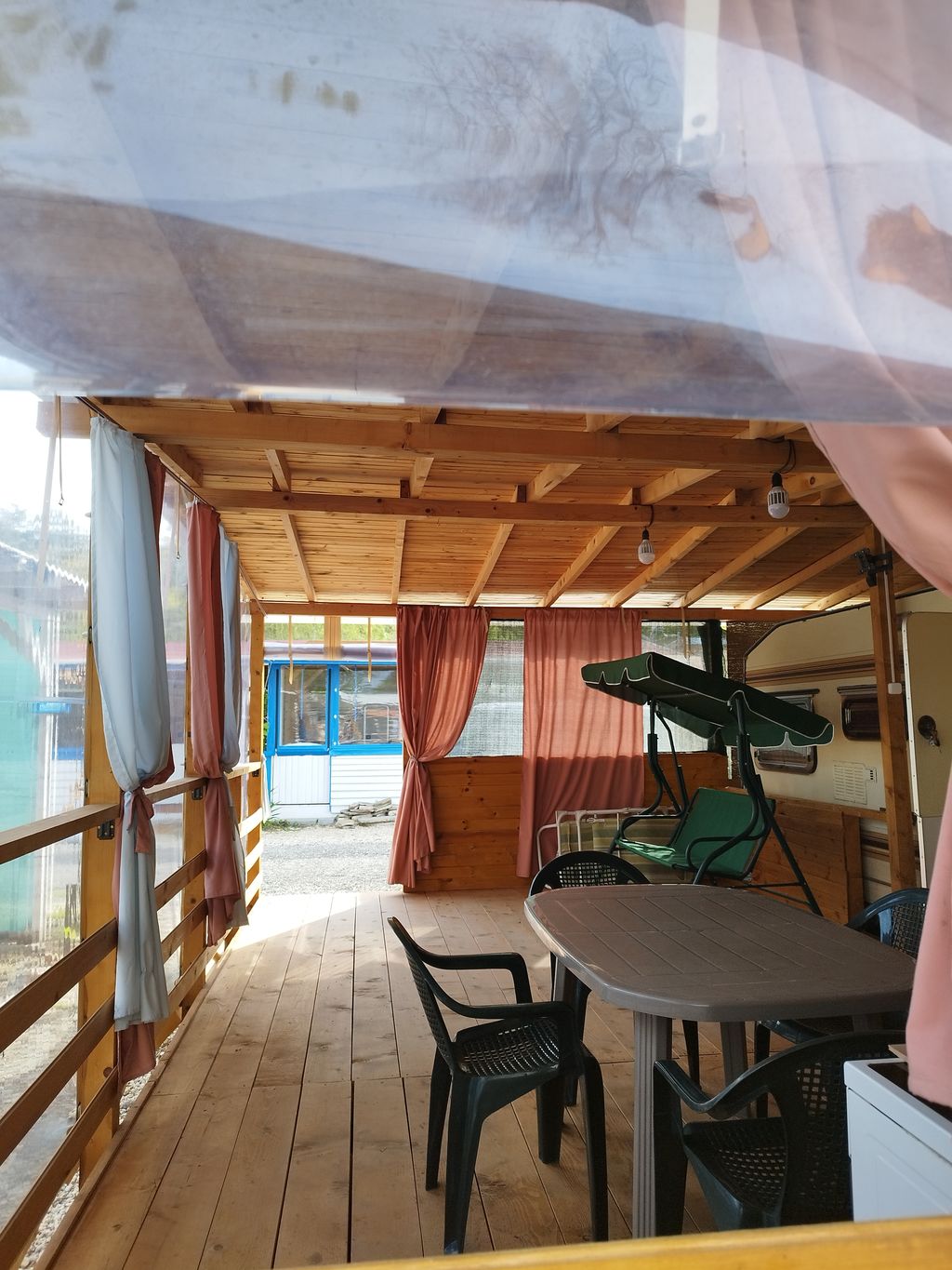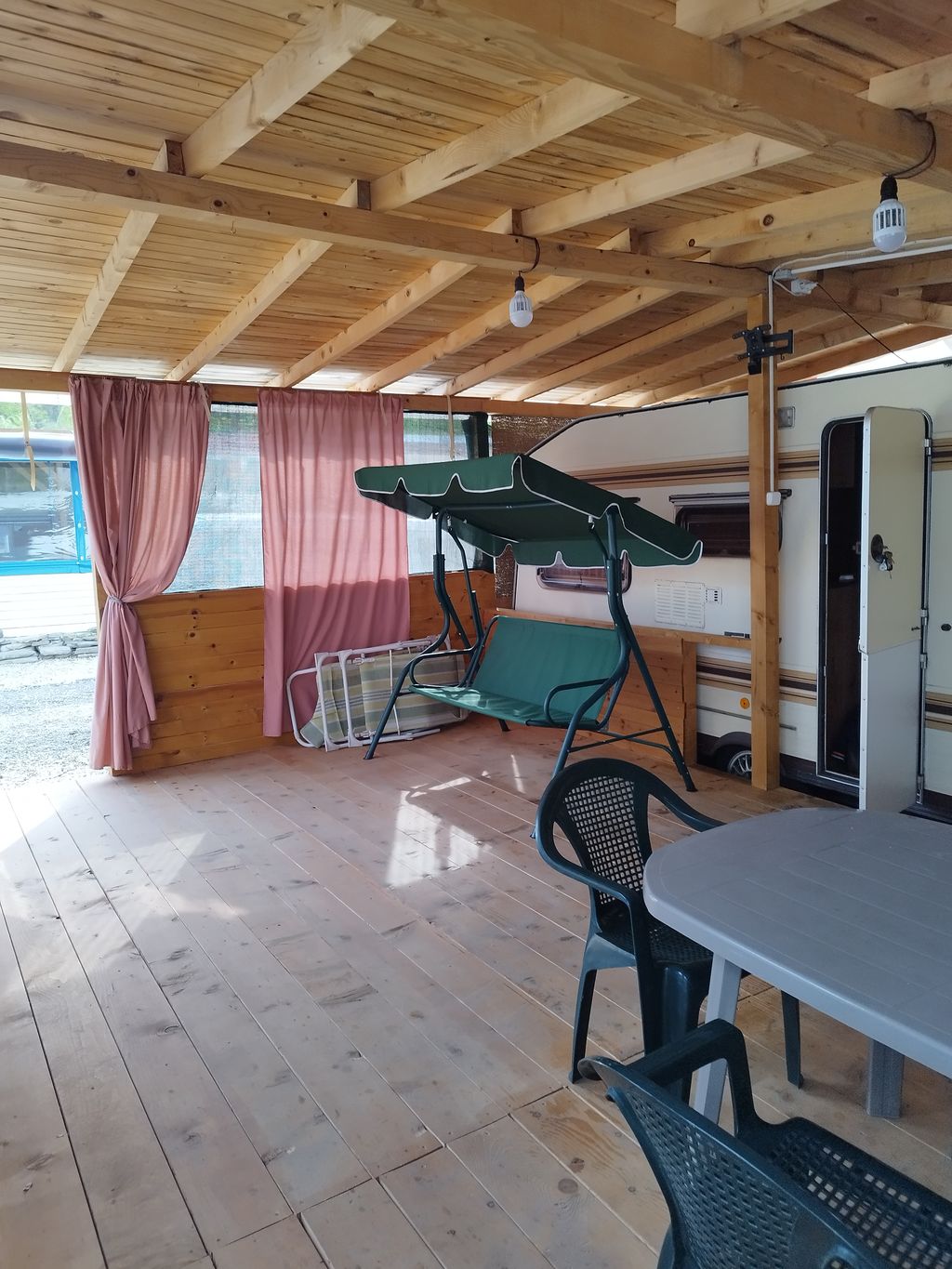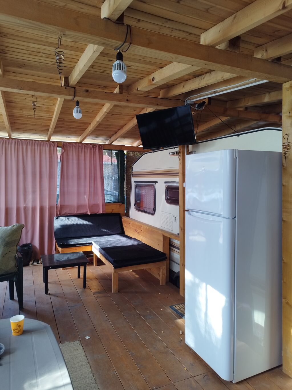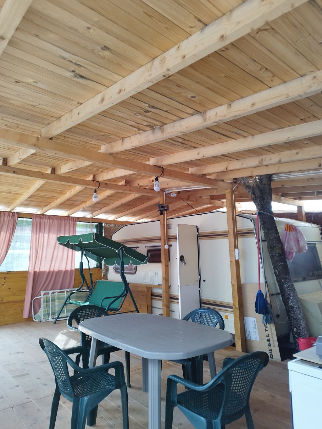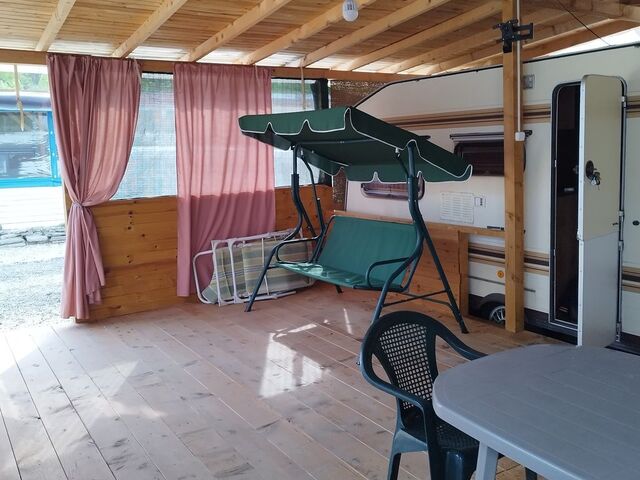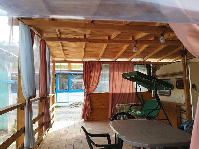 За вашата почивка предлагаме 4 спални места, осигуряваме спално бельо, близост до морето, паркомясто - на 1 метър от караваната, собствена баня с тоалетна и принадлежности, дървен навес, дървен под, климатик, градинска люлка, барбекю, оборудвана кухня, голям хладилник, печка с керамичен плот, телевизор.