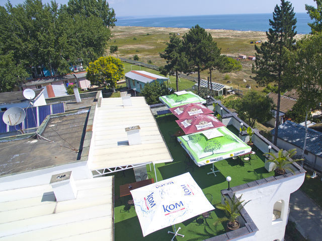 - пет фамилни къщи (по 60м2 всяка), състоящи се от спалня, детска стая с две легла, хол (с разтегателен диван, пригоден за един човек, холова маса с фотьойли, телевизор с булстат), просторна открита тераса с изглед към морето, с маси и столове за нея,широк санитарен възел със самостоятелен бойлер и кухненски бокс (готварска печка, хладилник, мивка, прибори).