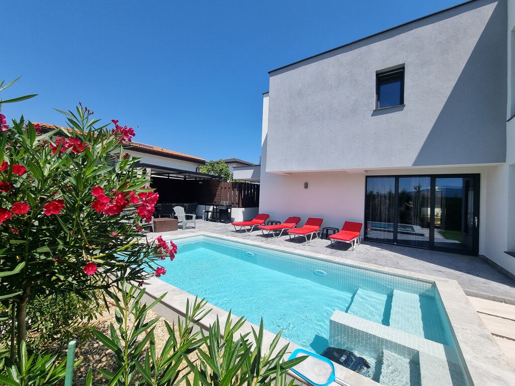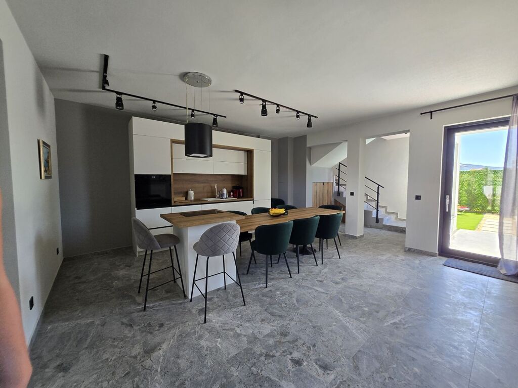 Around the pool you will find sun loungers with comfortable soft cushions, bean bags, umbrellas, as well as two spacious verandas – a morning coffee area and a covered veranda with a large dining table and barbecue, all surrounded by a beautifully landscaped garden.