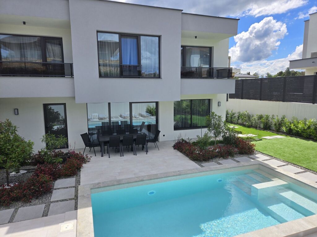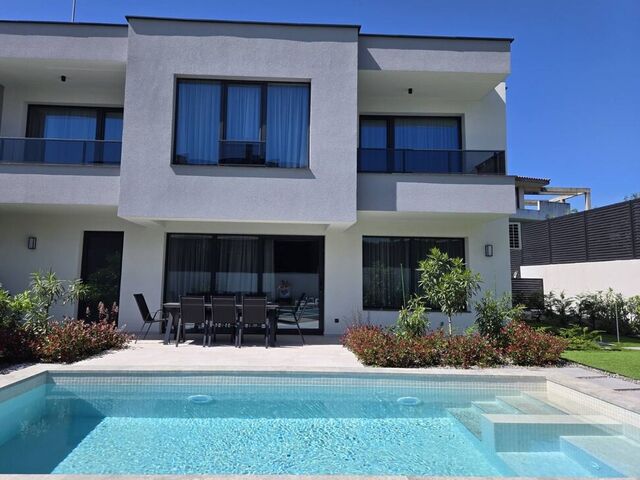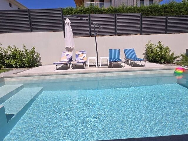 Around the pool you will find sun loungers with comfortable soft cushions, bean bags, an umbrella, as well as a spacious veranda with a large dining table and barbecue. The pool is surrounded by a beautifully landscaped garden, creating a calm and cozy atmosphere for relaxation.