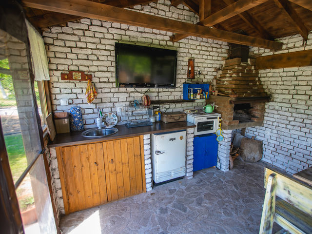 For the evenings there is a covered barbecue with a beautiful view of the spacious yard. The barbecue has an equipped kitchenette, plasma TV, stereo and all amenities separated from the house to ensure the peace of children.