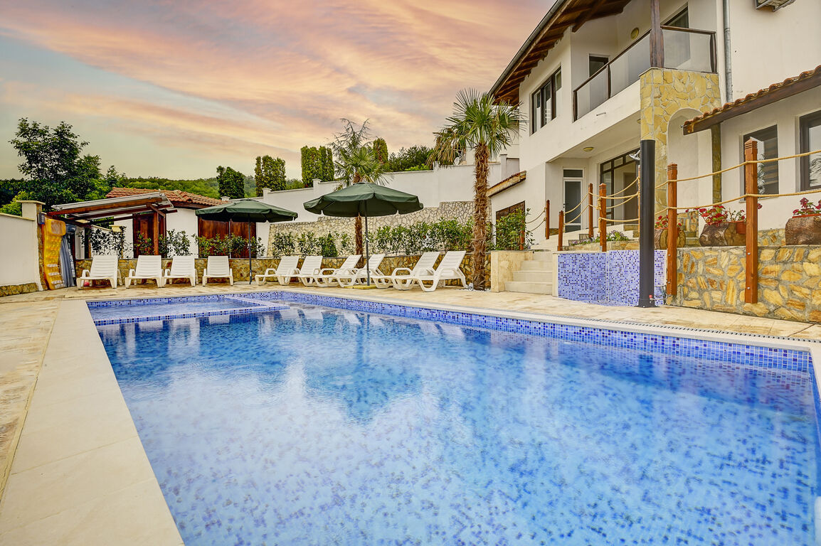 Вилата разполага с голяма банкетна зала с капацитет до 30 души, отделна кухня за приготвяне на храна, всекидневна с билярдна маса, камина и голям смарт телевизор. Вилата има 5 спални и може да настани до 15 души.