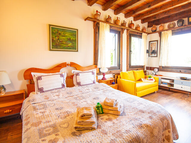 Къщата съчетава възрожденски стил, провансалски детайли и всички съвременни удобства. Разполага с 4 самостоятелни спални, всяка със собствена баня и тоалетна, механа с камина, външна BBQ зона, чардак с изглед към гората и обширен озеленен двор, идеален за игри, почивка и семейни моменти.