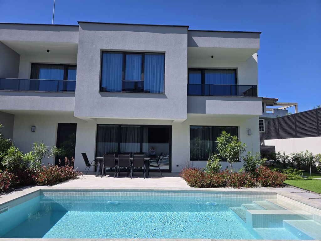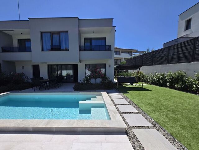 Пространството около басейна е оформено като уютна зона за отдих с удобни шезлонги, меки шалтета, пуфове, чадъри и поддържана градина, както и просторна веранда с маса за хранене и обособен барбекю кът – идеално място за споделени моменти и вечери на открито.