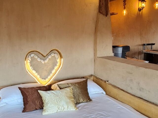 Глинена къща Адонай е изградена изцяло от екологични местни материали - глина, дърво и камък - изглежда приказно, а жизнената среда е здравословна.