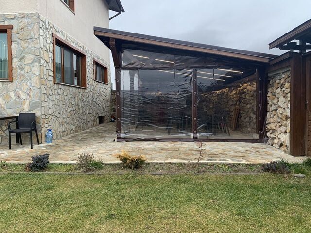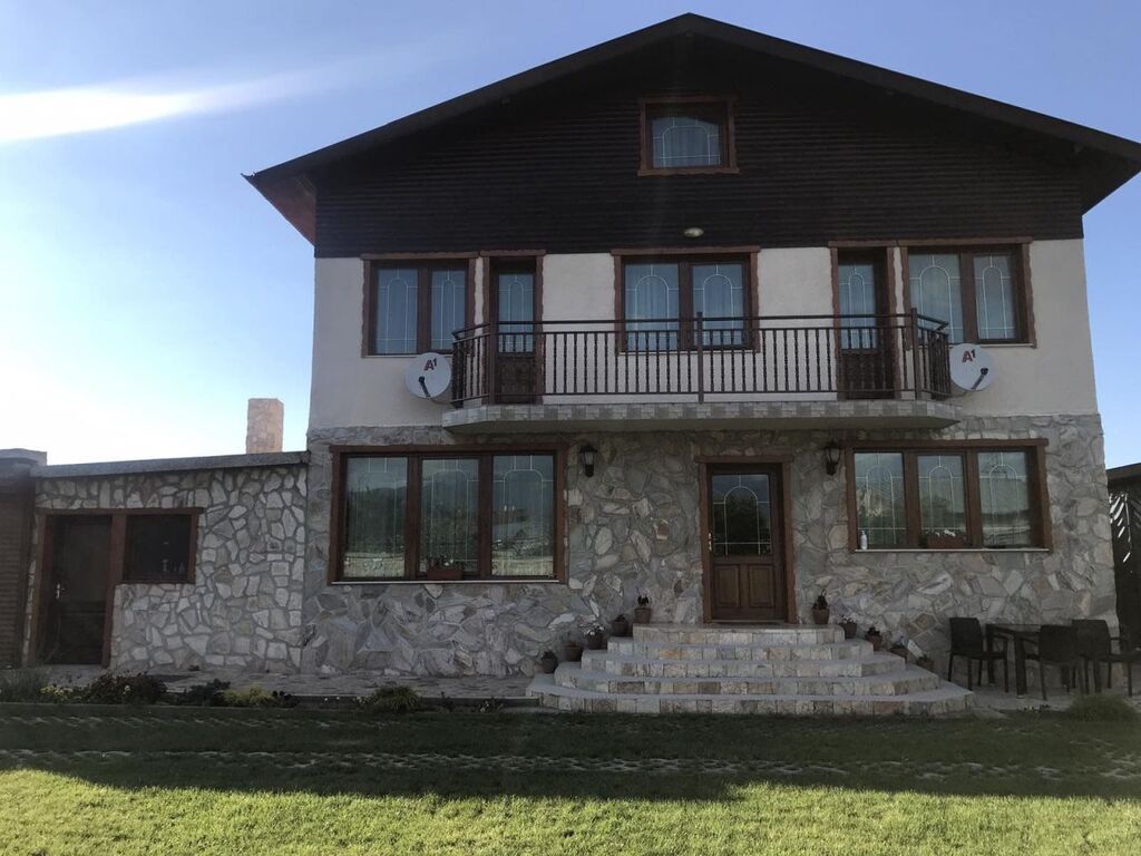 Къщата разполага с 12 места - 4 двойни спални, 1 единично легло и 2 разтегателни дивана за спане, оборудвана кухня, трапезария с 10 места, уютен хол с камина, закрито барбекю и градина, собствен паркинг и гаражи.