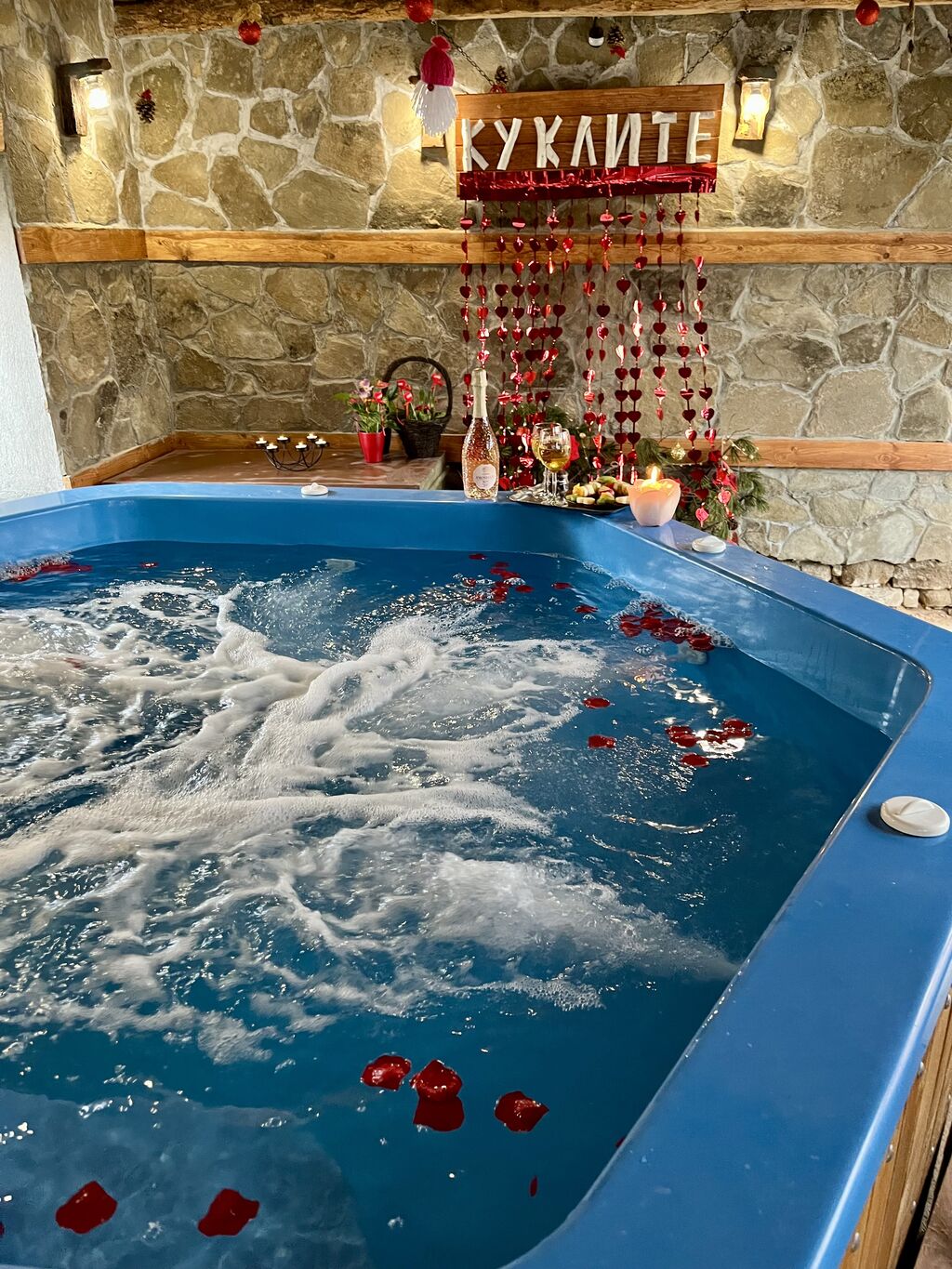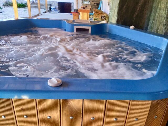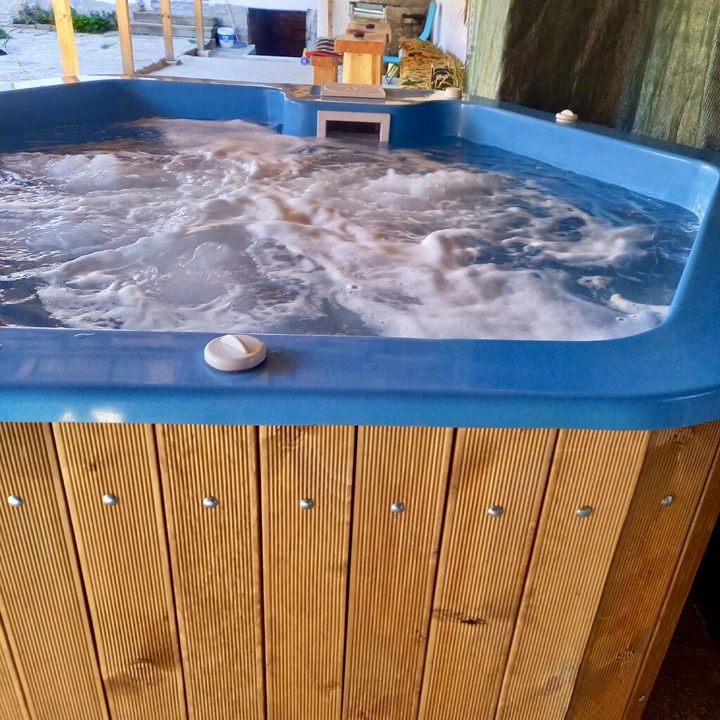 - Имаме външен навес с топло 8-местно джакузи, което работи целогодишно
