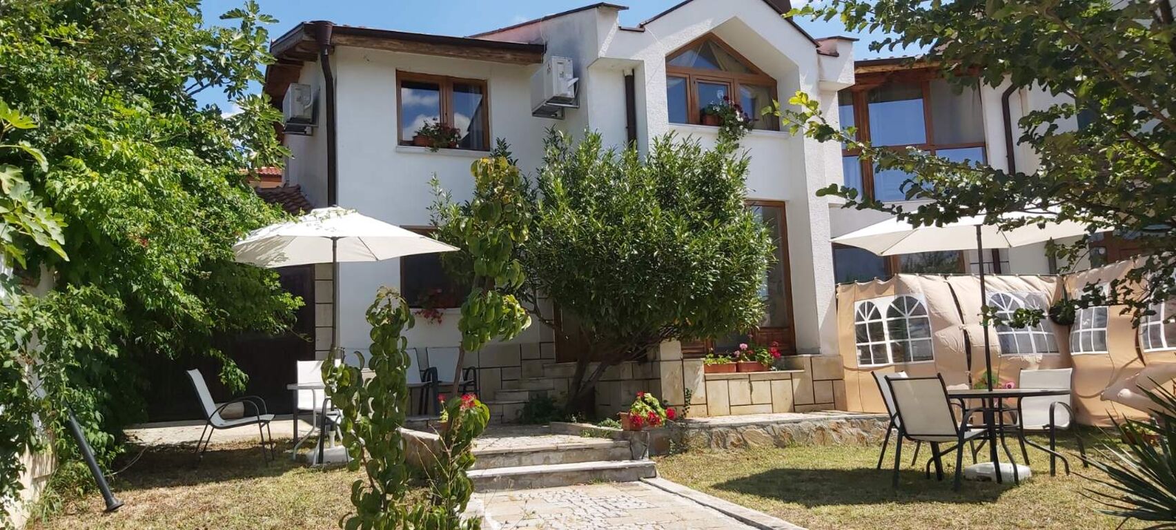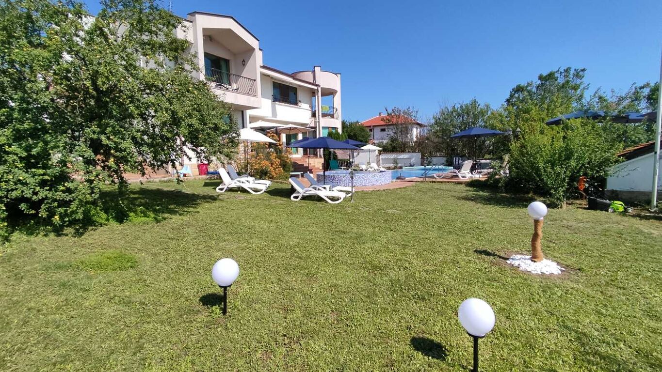 Резиденция "Виа Понтика" има възможност да настани 15 души (при по-голяма компания до 25 души), като предлага отлични условия за приятна, уютна и спокойна почивка, в близост до морския бряг и забележителностите на региона. Чудесна възможност за малка или по-голяма компания, като осигурява луксозна, комфортна атмосфера, благодарение на обширните общи части (дневна и кухненски тракт 150 кв.м), двор (1250 кв.м), близостта на морските перли Несебър, Слънчев бряг и Свети Влас.