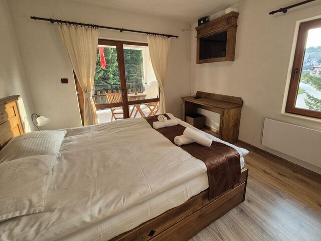 Разполага с 2 спални, 2 бани, спално бельо, кърпи, телевизор с плосък екран, напълно оборудван кухненски бокс, тераса с изглед към планината и паркомясто за Вас.