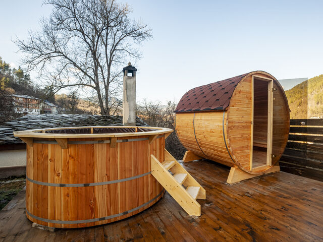 В двора ви очакват чисто нови външни сауна и джакузи, създадени за пълно отпускане и възстановяване. Насладете се на релакс под открито небе – независимо дали е снежна зима, прохладна пролет или тиха лятна вечер.