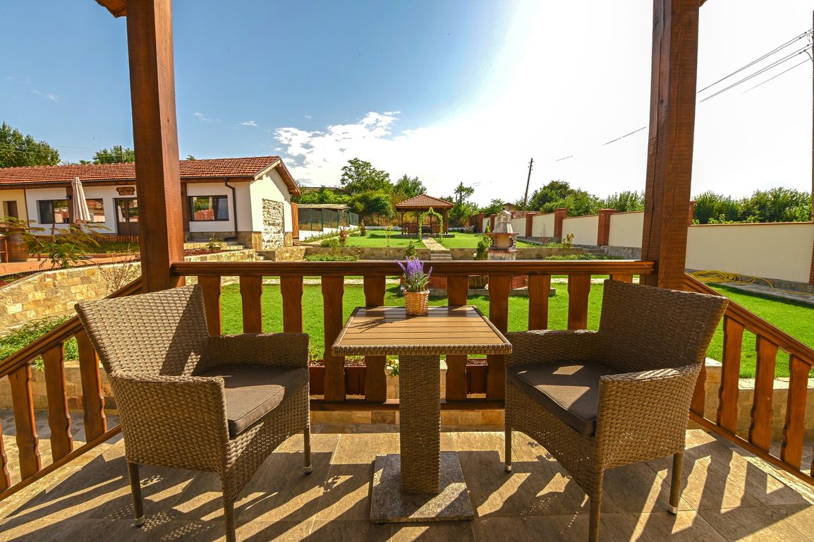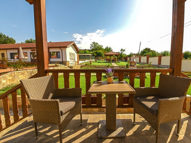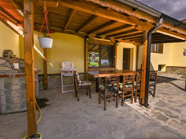 Къщата разполага и с веранда за отдих, както и просторен навес с масивна маса и столове за 10 човека.