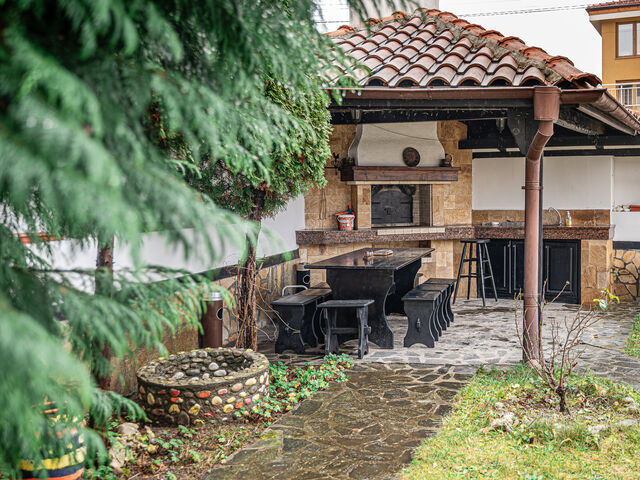 Вилата е оборудвана с подово отопление, климатици и камини, които осигуряват приятна атмосфера през всички сезони.