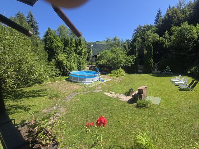През летния сезон и басейн. Люлки за децата.