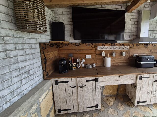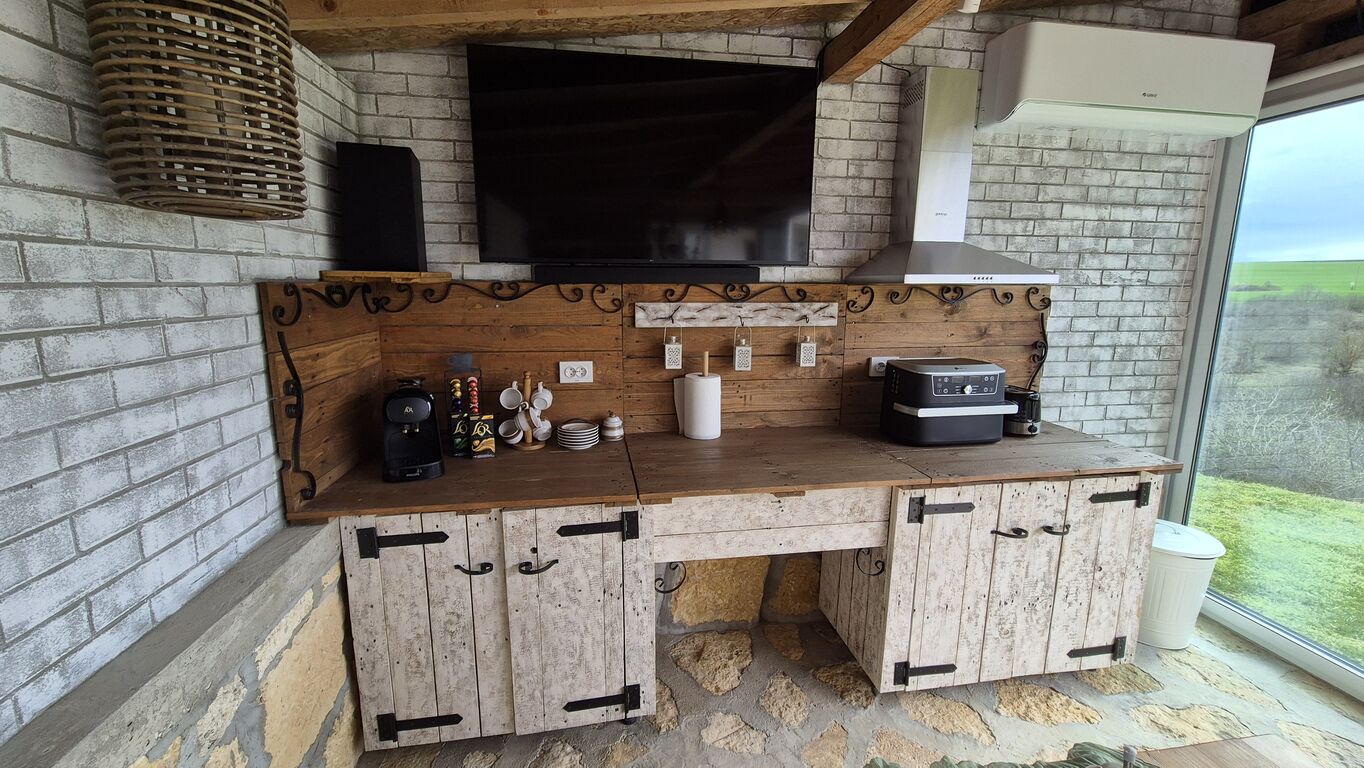 - Напълно оборудван кухненски бокс (с еърфрайър, мултикукър, гофретник, грил, хладилник и др.).