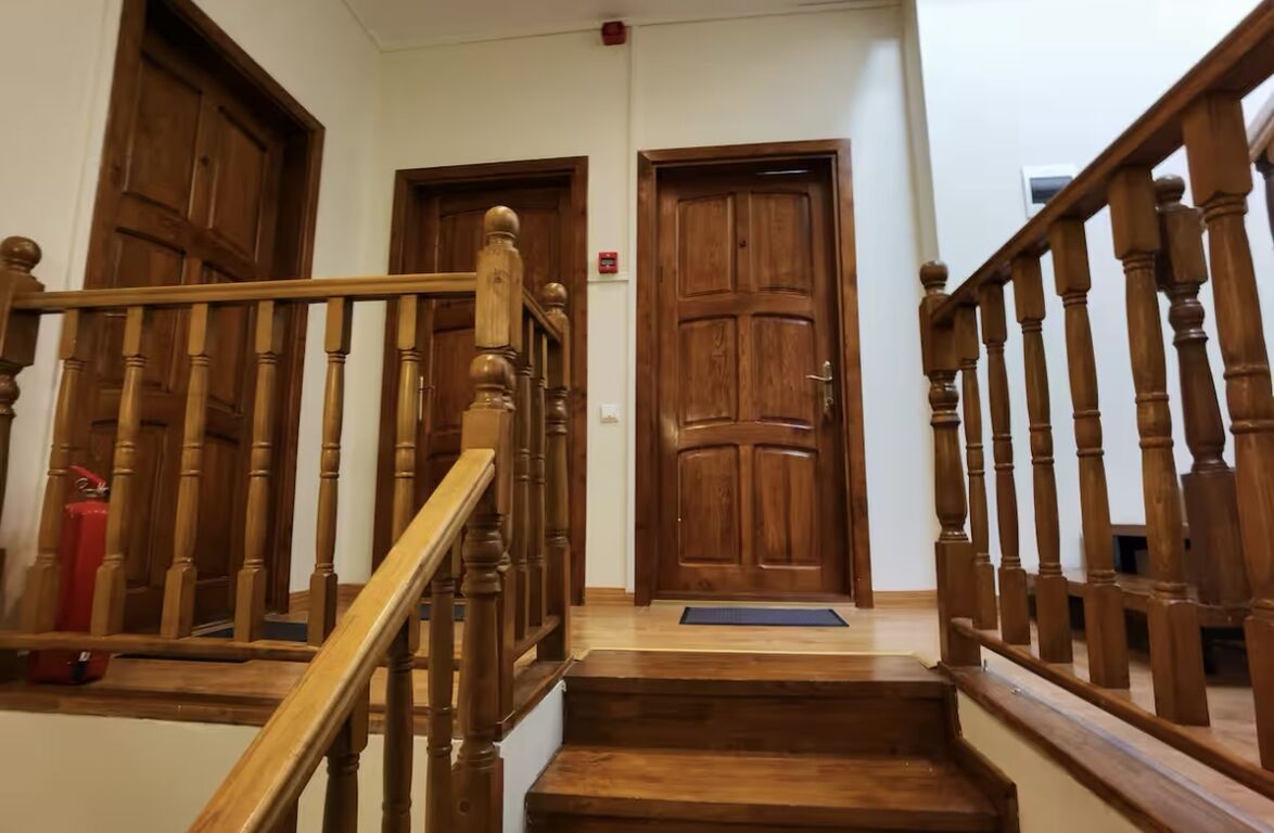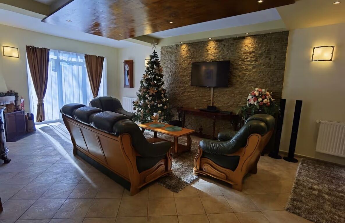 Всяка стая има собствена баня с душ, телевизор и сешоар. Първият етаж на вилата е открито пространство, което включва трапезария, хол с камина и тоалетна.