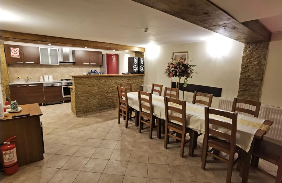 Общият капацитет на къщата е предвиден за 18 човека, разпределен на 3 етажа в 7 самостоятелни спални, на разположение е и гараж, и места за паркиране.