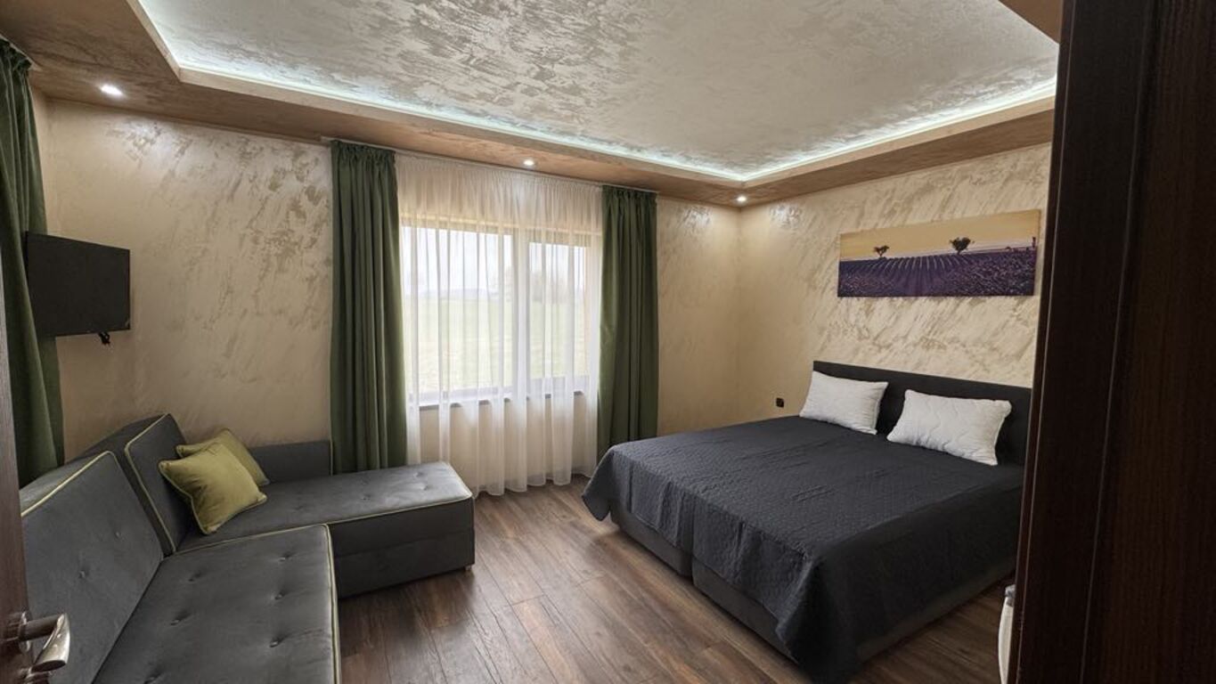 Разполага с четири двойни стаи - спални с италиански ортопедични матраци, една тройна и една стая със спалня и двоен разтегателен диван. Трите санитарни възела са заредени с козметика и тоалетни принадлежности.
