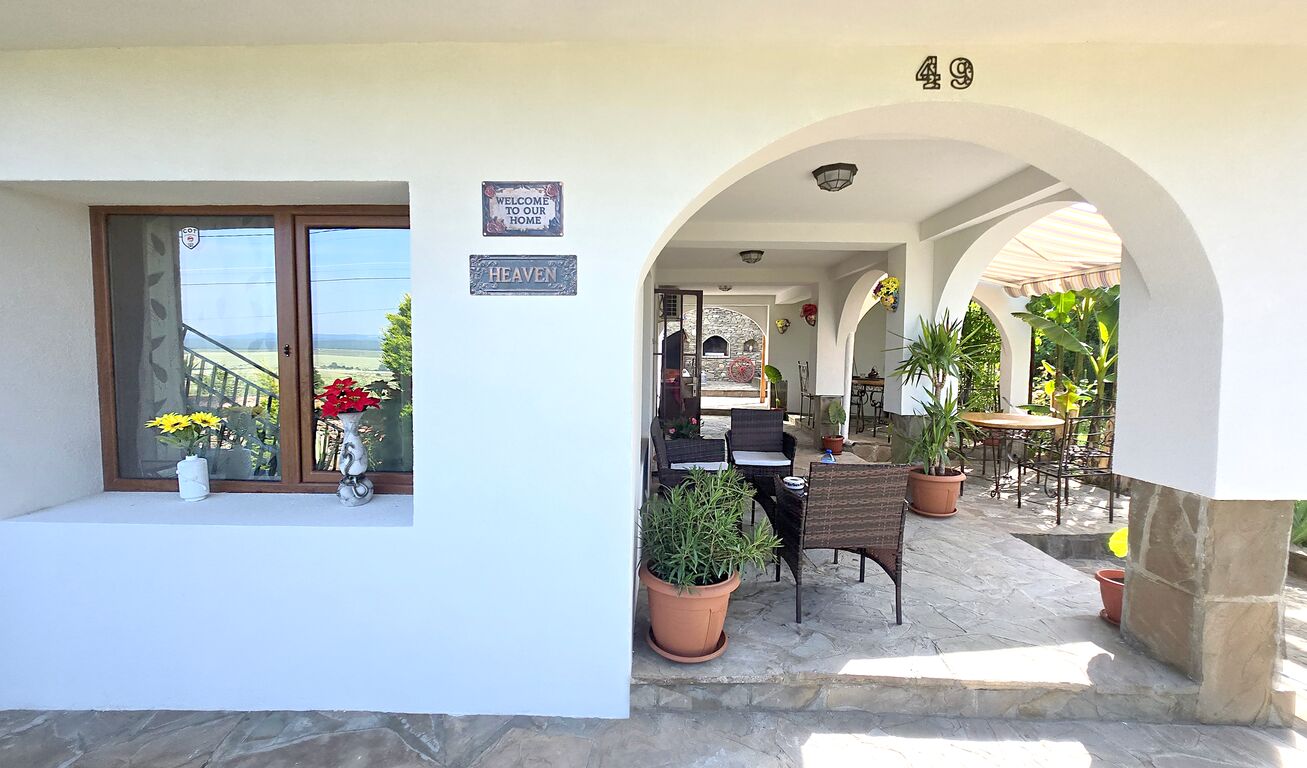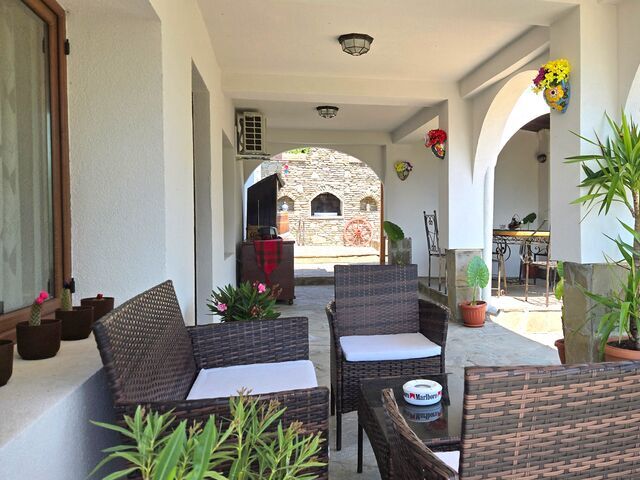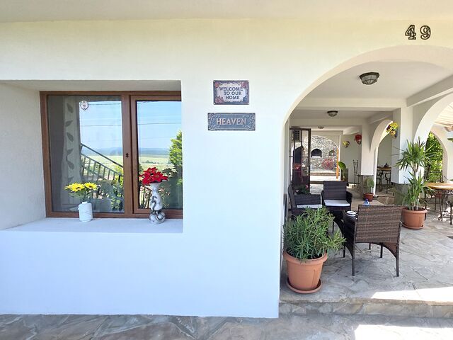 Обектът разполага с покрита тераса с голяма маса, просторен и ограден двор с детски кът, батут, басейн, джага и дартс. На втория етаж е разположена голяма открита тераса, предлагаща прекрасна гледка.