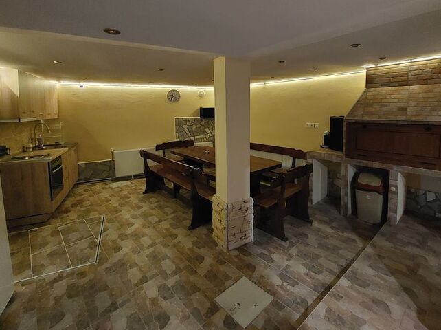 Къщата разполага с леглова база от 11 места, локално парно на пелети, хидромасажно джакузи.