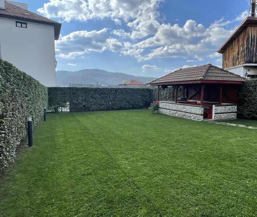 Градината към вилата е огромна и разполага с беседка и детски кът.