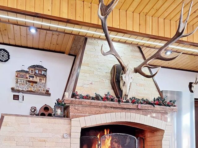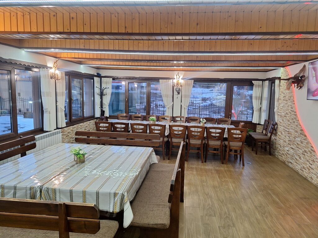 Оборудвана е с голяма кухня (зимна и лятна), печки, фурна, котлони, микровълнова, тостер, ел. кана, съдомиялна, хладилници, телевизор, караоке, санитарен възел, парно отопление, всякаква посуда, необходима за готвене.