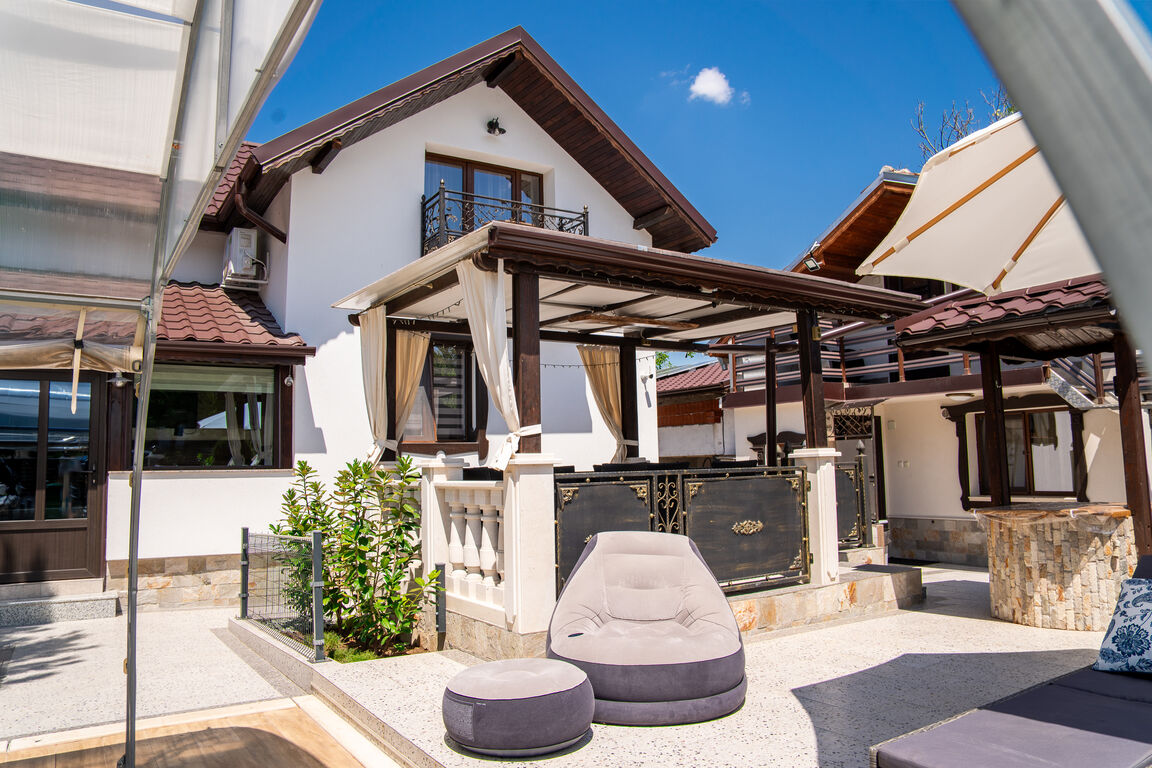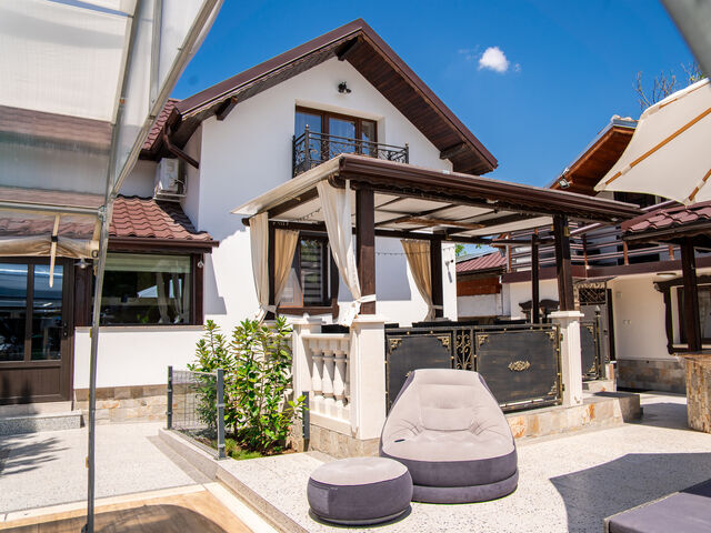 - телевизия, интернет, климатици, голям паркинг, басейн, детски кът с люлка, пързалка и батут, джакузи, масажен стол, сешоар, ютия, колона