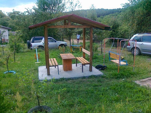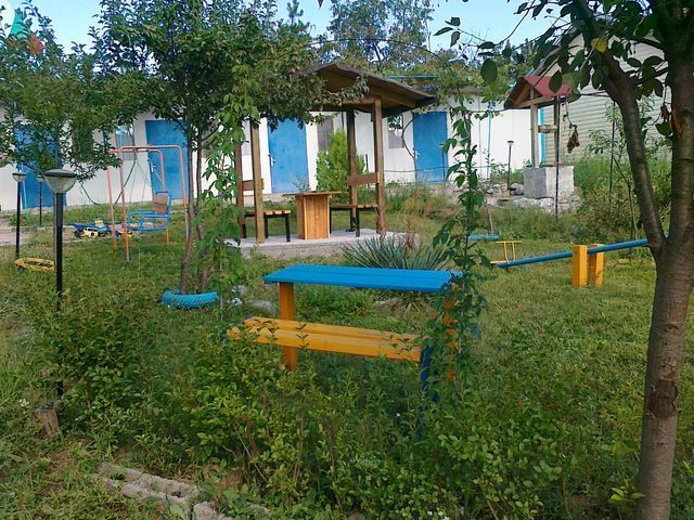 В двора има малка беседка и люлки за деца, столова и оттдена кухня, лятна баня, обща тоалетна, телевизор и сателитна тв.