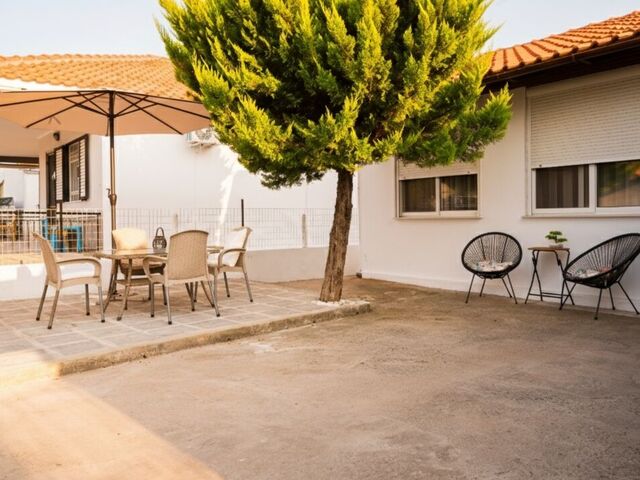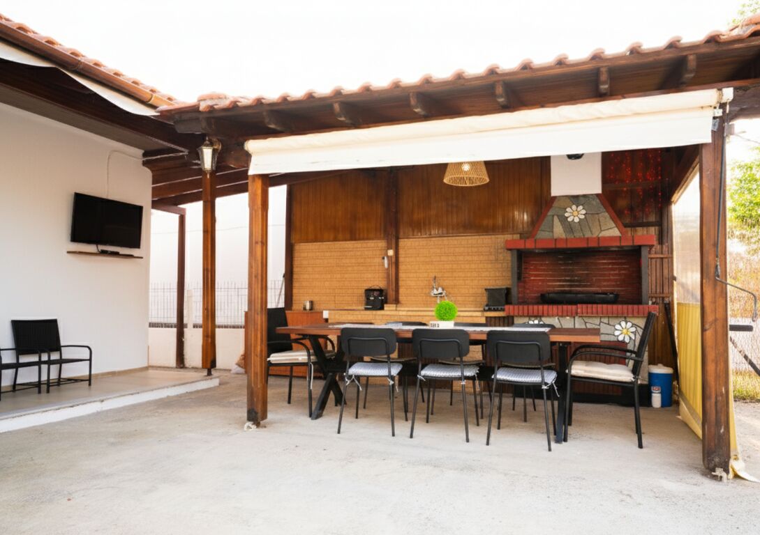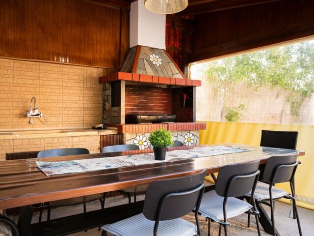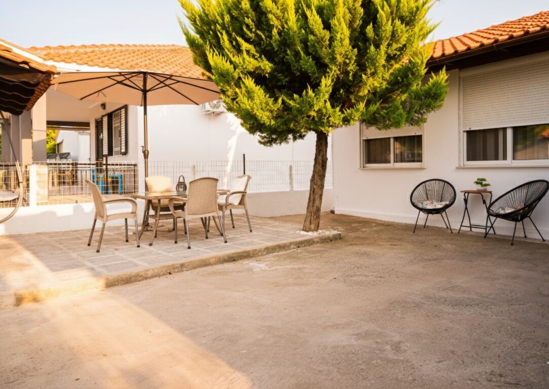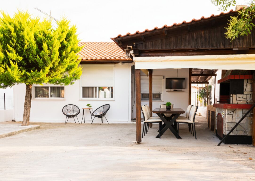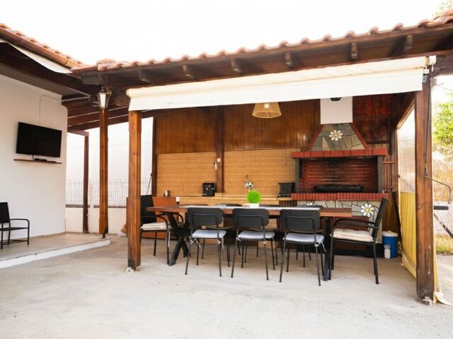 Очарователна вила с три спални във вилната зона на Неа Каликратия – идеална за семейна почивка или почивка с приятели. Вилата разполага с две бани и тоалетни, като едната е удобно разположена отвън за по-голям комфорт през летните дни.