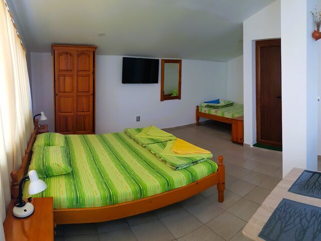 Удобствата в петте двойни стаи са климатик, самостоятелен санитарен възел, 32" LED Smart телевизор с кабелна телевизия, хладилник, високоскоростен Wi-Fi интернет, просторна тераса с изглед към морето.